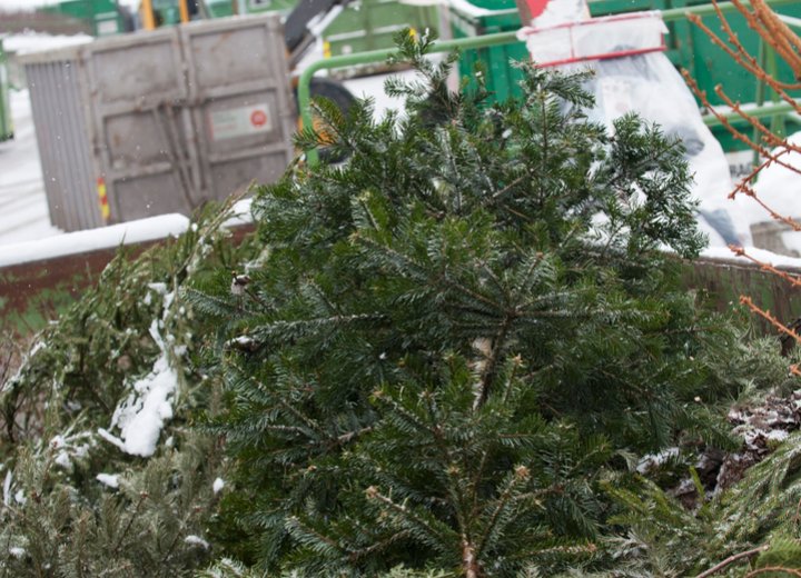 Lever juletreet som hageavfall til gjenvinningsstasjonen.