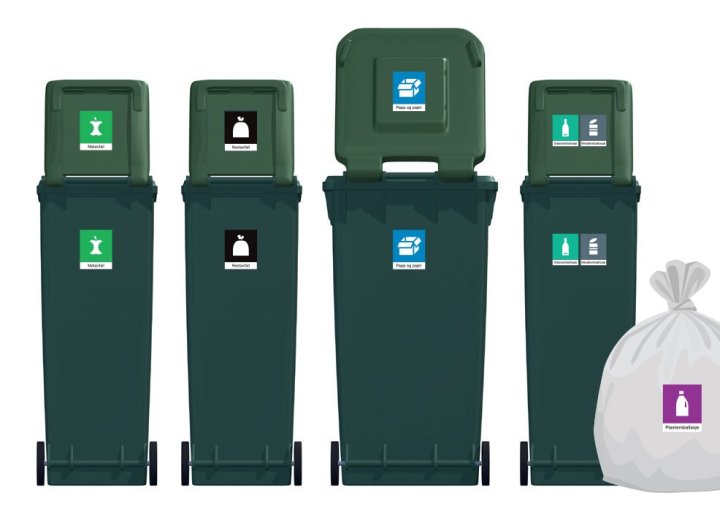 Alle todelte 260-liters beholderne for mat- og restavfall erstattes nå med to separate 140-liters beholdere. Utskiftningen starter i februar, og målet er at alle todelte beholdere skal være byttet ut innen sommeren 2026, slik at renovasjonsordningen er tilpasset den nye henteordningen der matavfall tømmes hver 2. uke og restavfall hver 4. uke. Ny standardløsning for beholdersett, med separate beholdere for matavfall og restavfall.