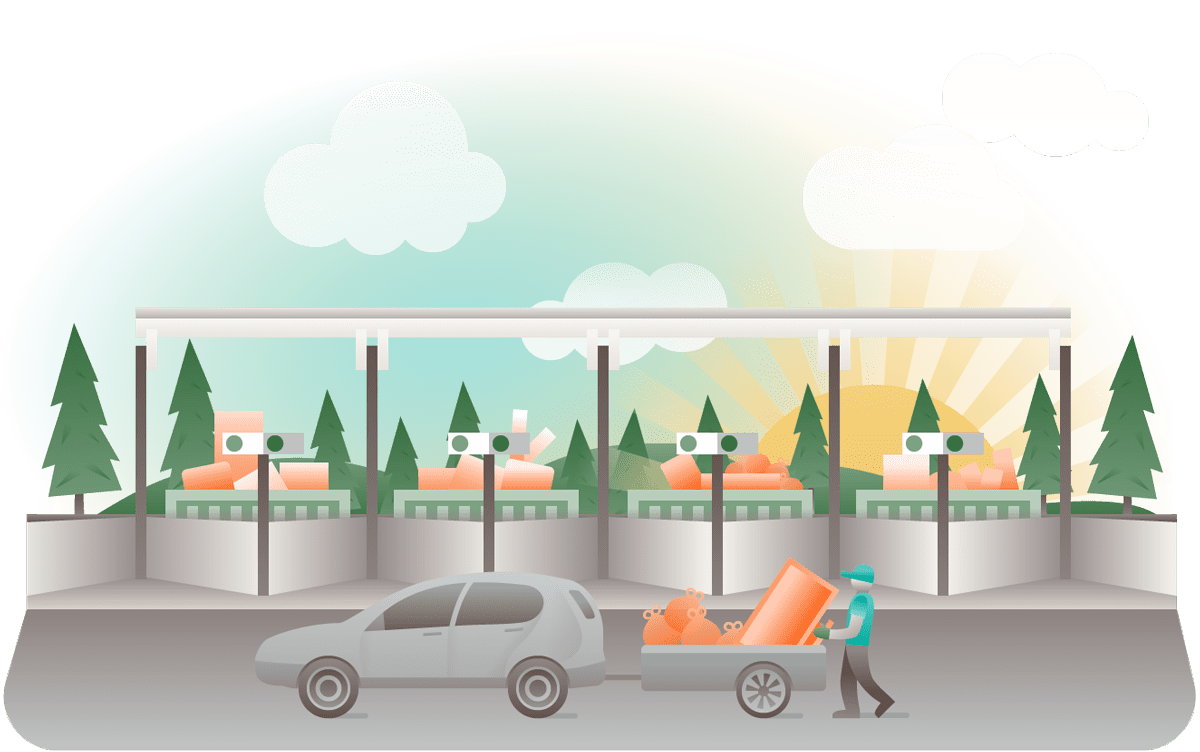 På de fleste gjenvinningsstasjonene er det automat inn- og utkjøring av stasjonen. Ved innkjøring:
